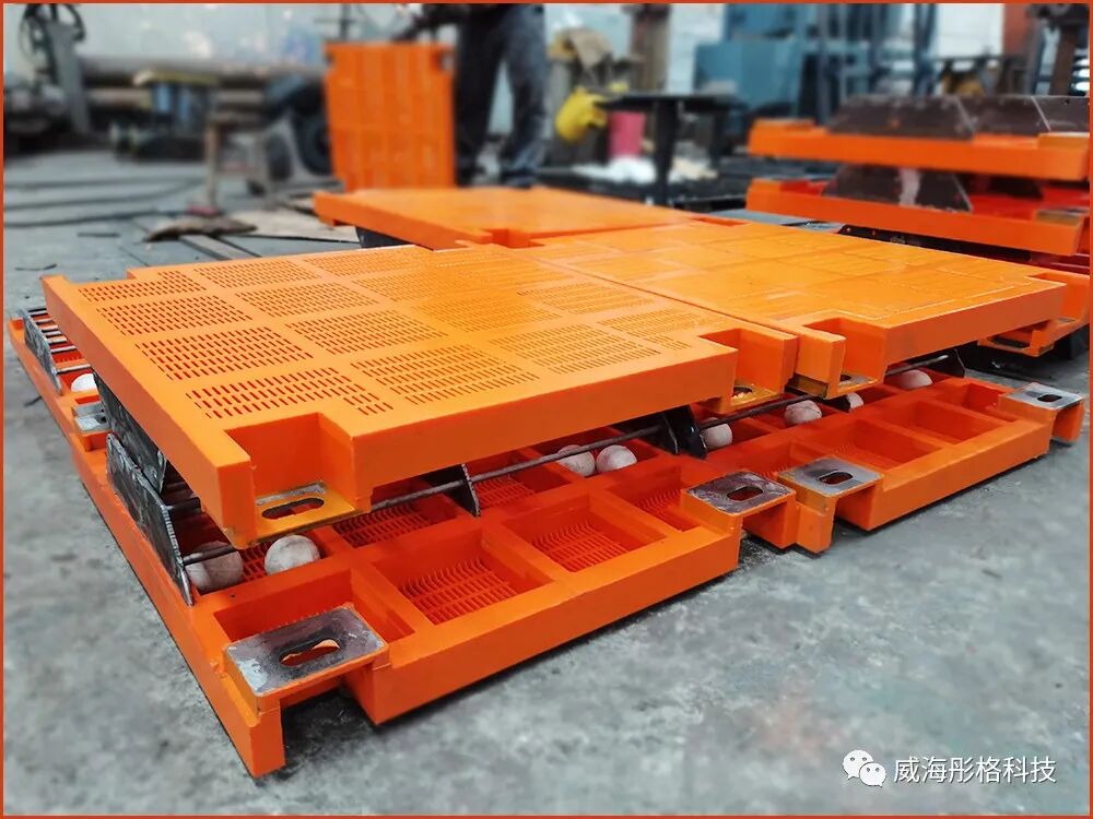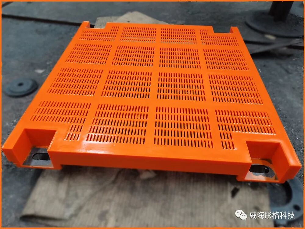 MDI型产品比类似于TDI型的产品具有较低的异氰酸酯气味、优异的耐水解性以及较高的回弹性。 筛面条缝厚度5mm左右,超高回弹性,不易堵孔筛面底部加装弹力球 改进生产工艺,筛板表面光滑,条缝尺寸精确无气孔